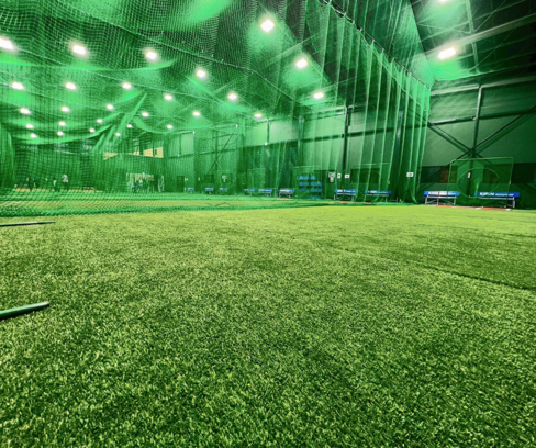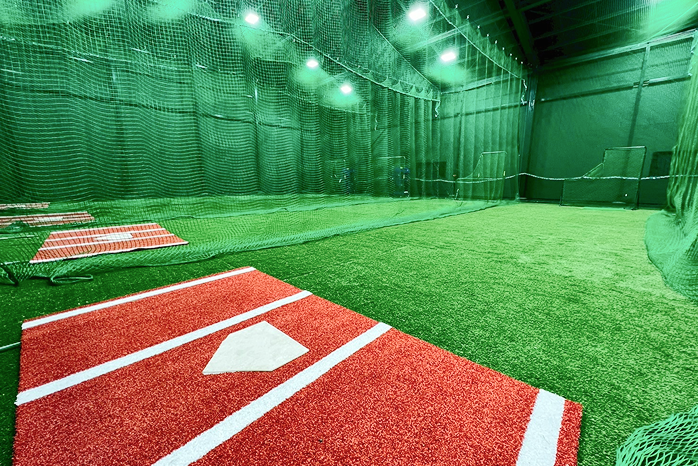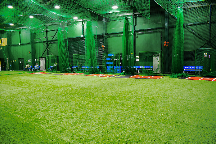 日本最大級の広さを誇る室内練習場。広々とした練習スペースを体感いただけます。5つのバッティングエリアと3つのピッチングエリア、トレーニングルーム(個室)も備えております。