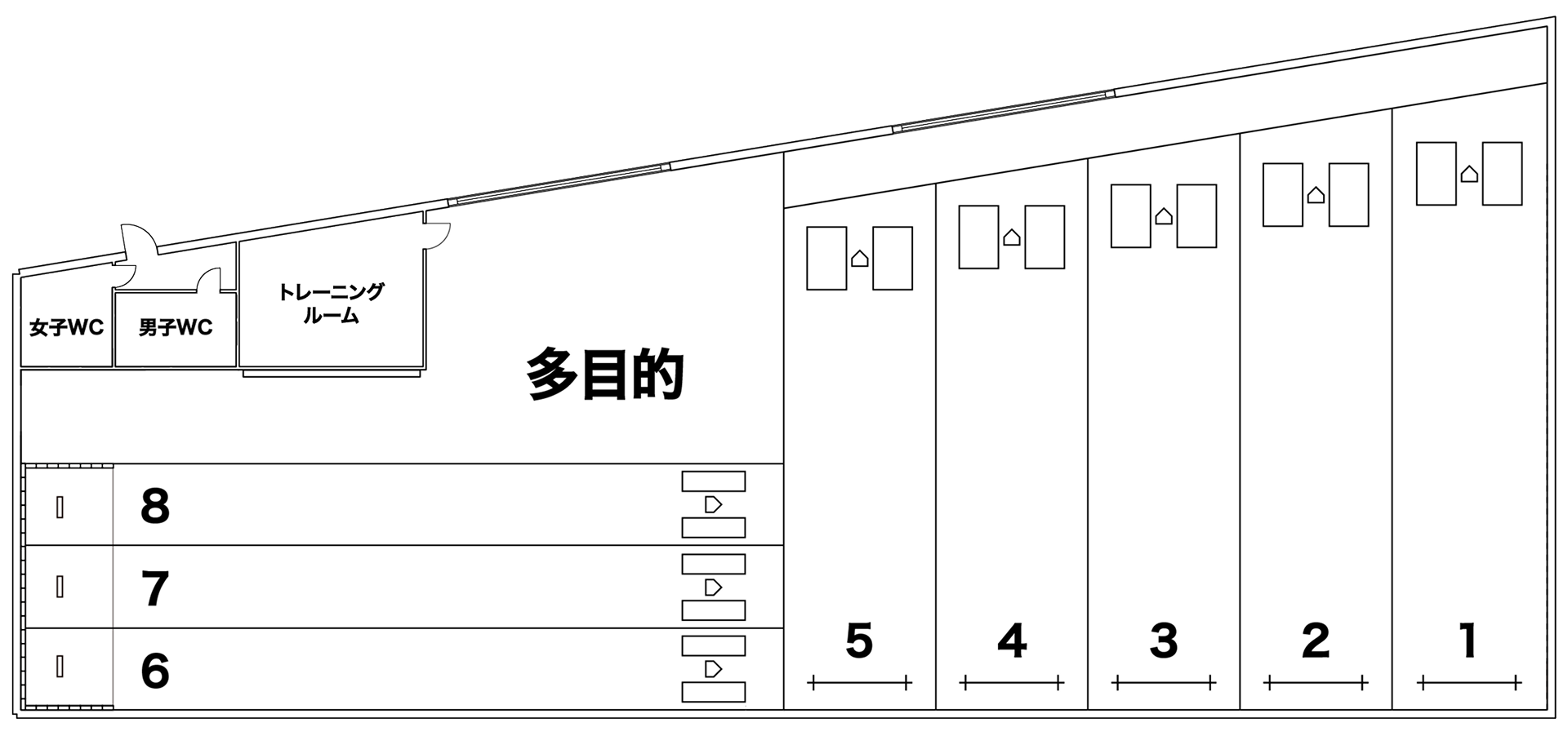 全エリアが60分単位でご利用できます。貸切ることが可能なので、チーム利用や大人数のご利用にも最適な環境です。雨の日にもご利用いただけるように貸出しを行っております。