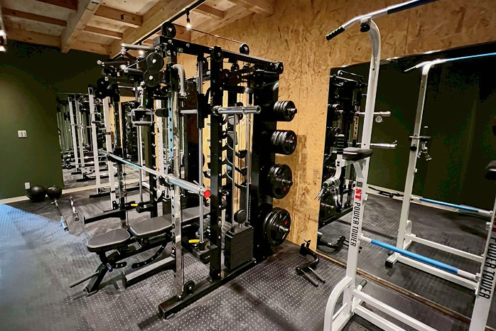 スミスマシン1台、ラック1台、ベンチプレス1台、その他トレーニング機材多数ございますので用途に合わせたトレーニングが可能です。